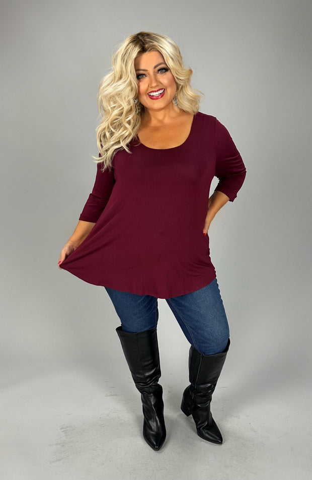 38 SQ {Finally On Time} Wine Scoop Neck Top PLUS SIZE 1X 2X 3X