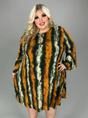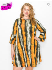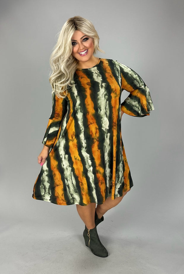 34 PQ {Wishful Heart} Orange/Olive Stripe Print Dress EXTENDED PLUS SIZE 1X 2X 3X 4X 5X