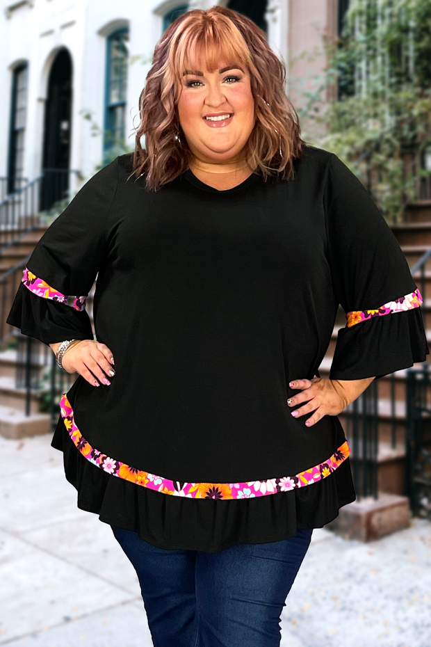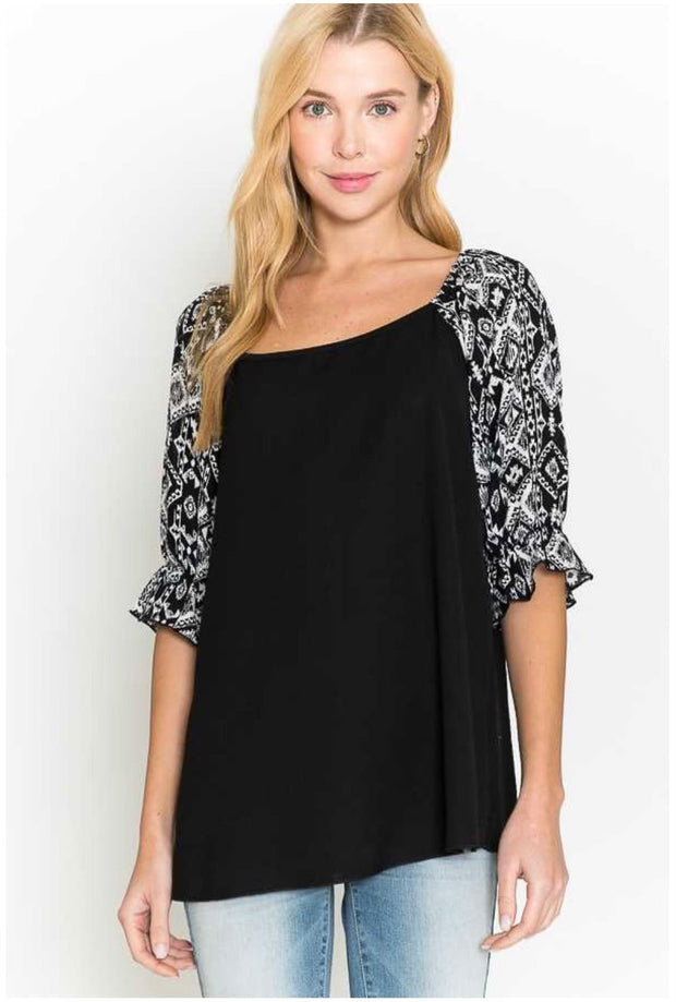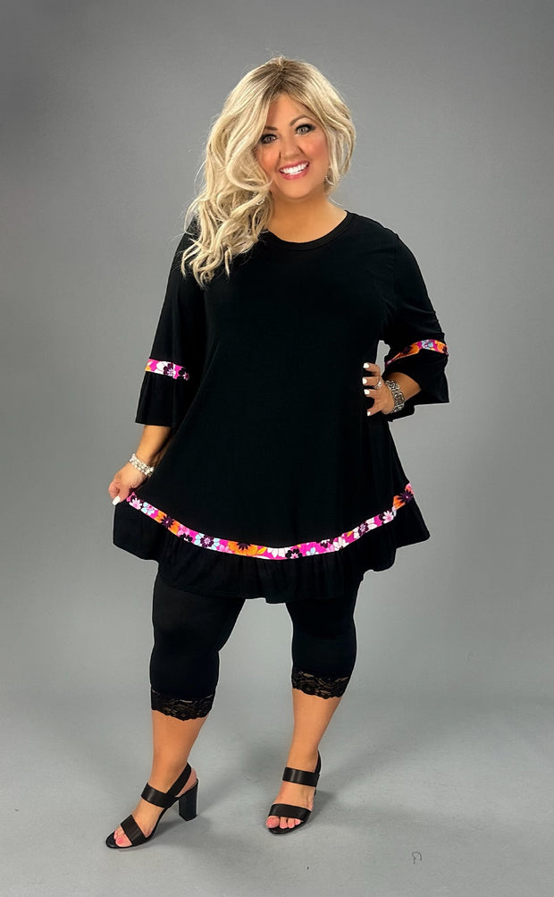 73 SQ {Be Happy With Who You Are} Charcoal 3/4 Sleeve Top PLUS SIZE 1X 2X 3X