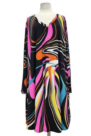 100 CP {Art Of Beauty} Black Pink Contrast Cross Neck Tunic EXTENDED PLUS SIZE 3X 4X 5X