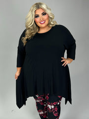 44 SLS {Night Views} Black Round Hem & Neck Tunic CURVY BRAND!!! EXTENDED PLUS SIZE XL 2X 3X 4X 5X 6X (May Size Down 1 Size)