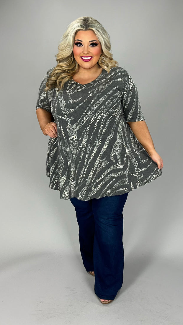 35 PSS {A Little Wild} Gray Leopard Babydoll Top EXTENDED PLUS SIZE 3X 4X 5X