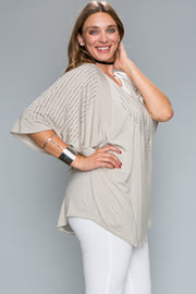 45 SD [Twilight Sparkles} VOCAL Gray Front Studded Top PLUS SIZE 1X 2X 3X