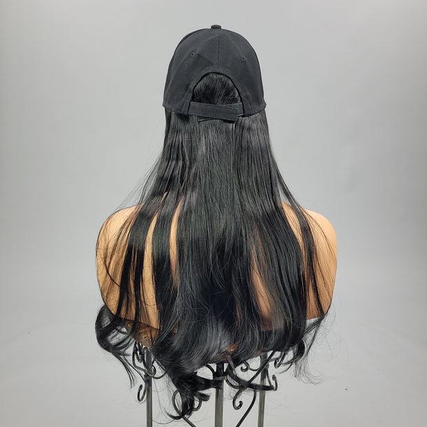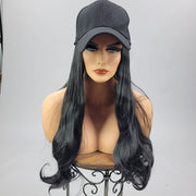 {Genesis} Black Long Baseball Hat Wig