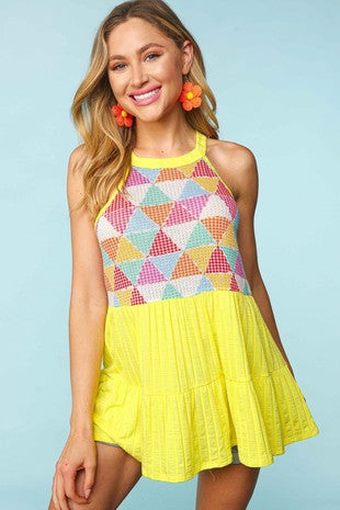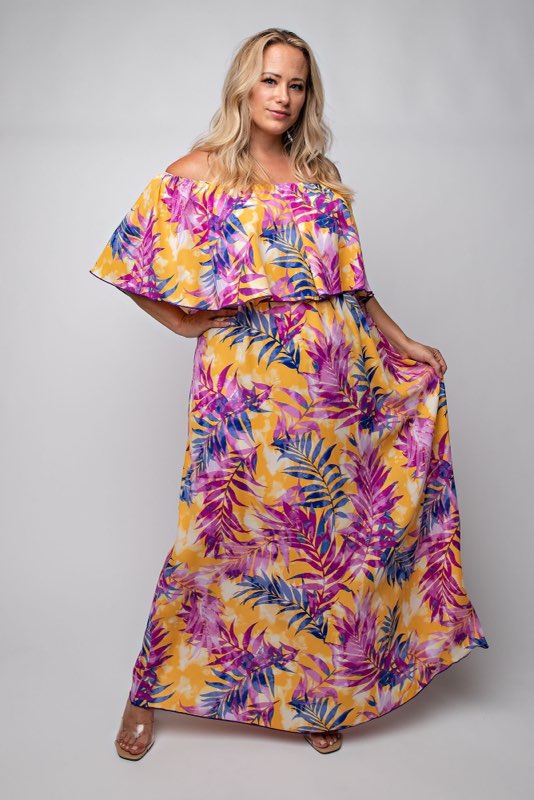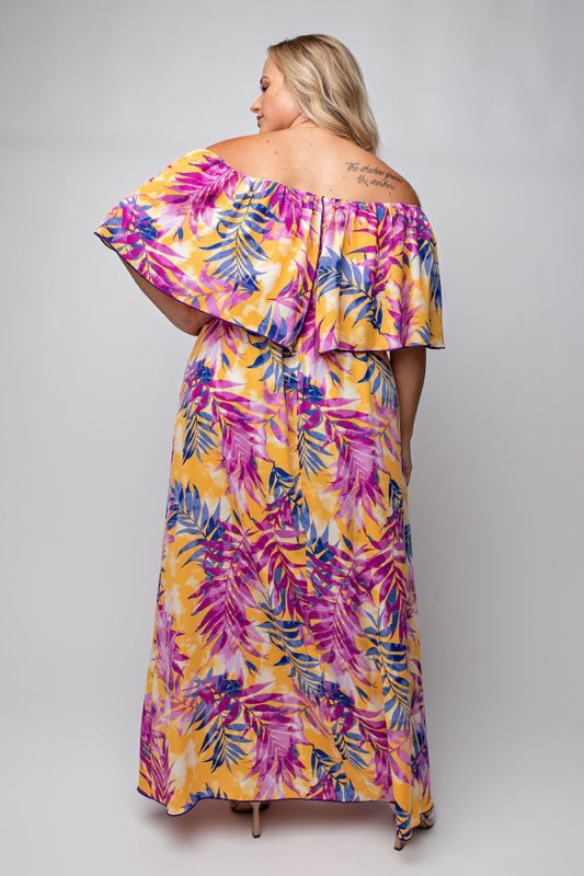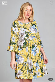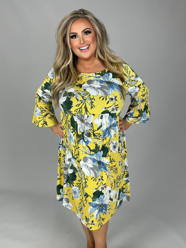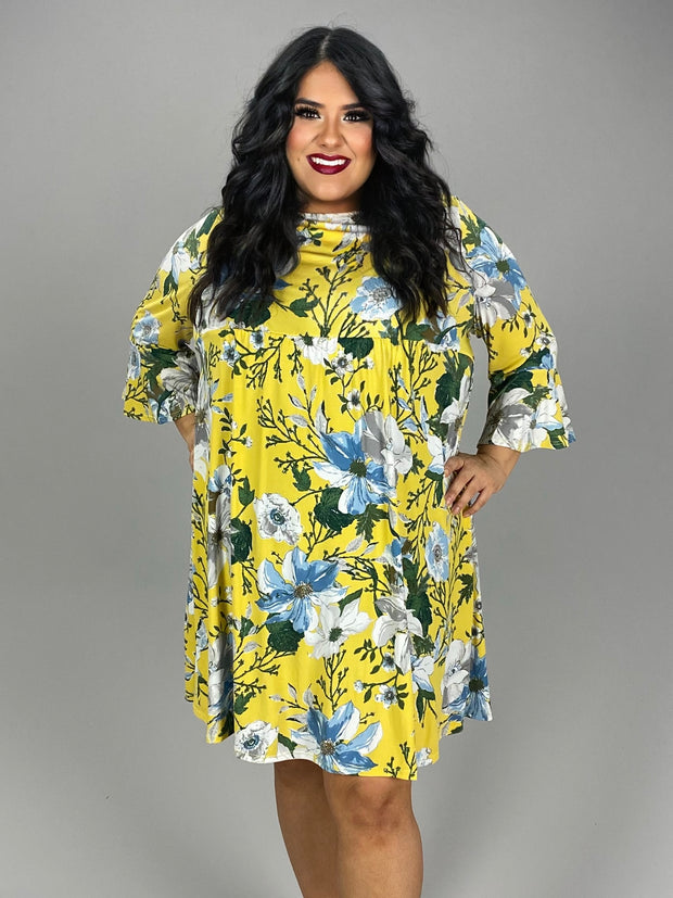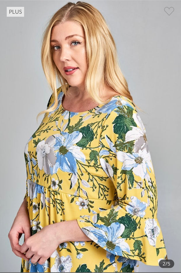 LD-B {Feeling Smitten} Mellow Yellow Smock Floral Hi/Low Maxi PLUS SIZE 1X 2X 3X