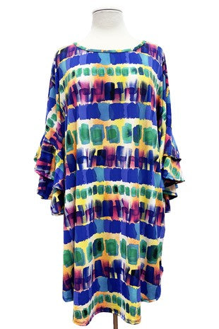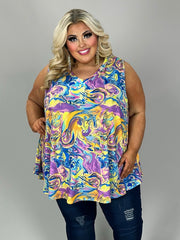 29 PQ {Busy Days Ahead} Blue Black Yellow Print Top PLUS SIZE XL 2X 3X