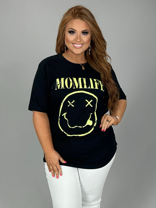 77 GT-T {Mom Life} Black/Neon Yellow Print Graphic Tee PLUS SIZE XL 2X 3X