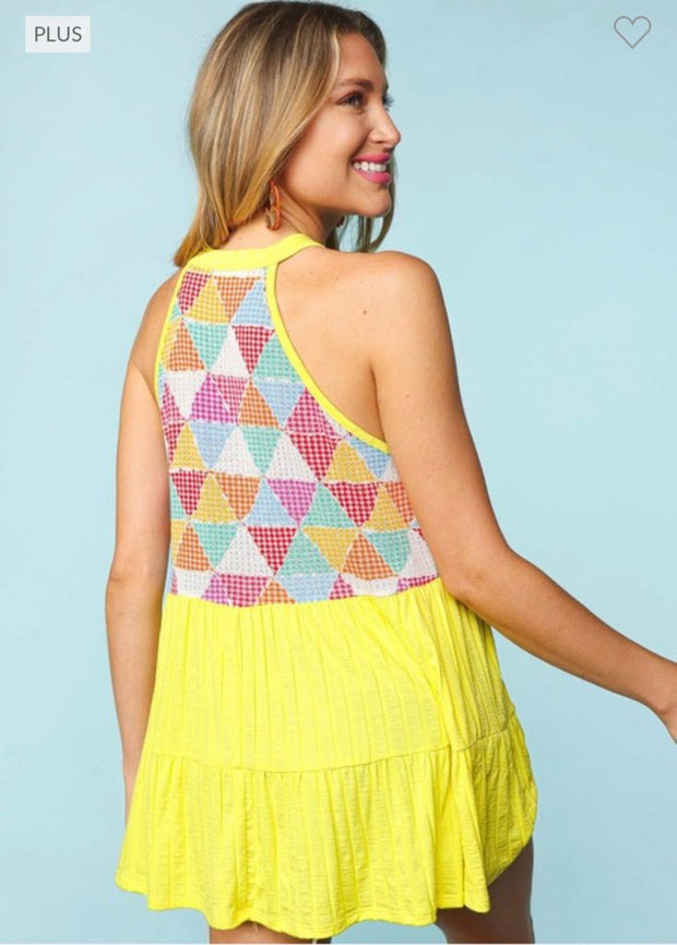 100 PQ {Mixed Beauty} Yellow Mixed Print V-Neck Top EXTENDED PLUS SIZE XL 2X 3X 4X TRUE TO SIZE!!