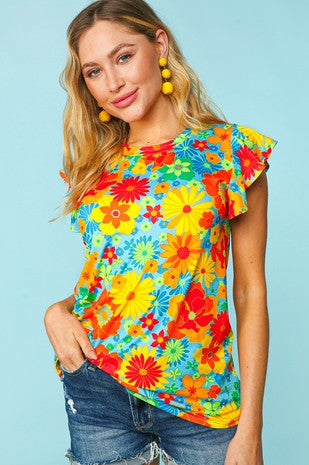 53 PQ {Other Side Of Wild} Yellow Animal Print Angel Wing Top EXTENDED PLUS SIZE 4X 5X 6X