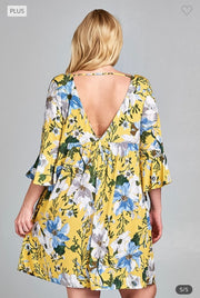 62 PSS-U {Truly Darling} Yellow Floral Open Back Dress PLUS SIZE 1X 2X 3X