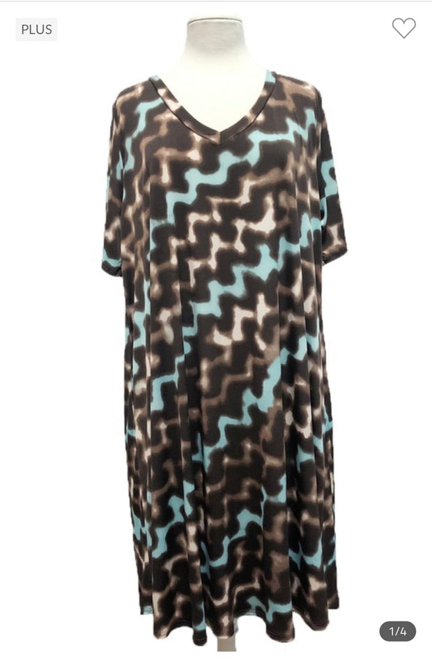17 PSS-O {Wavelength} Brown/Mint Print V-Neck Dress PLUS SIZE 1X 2X 3X