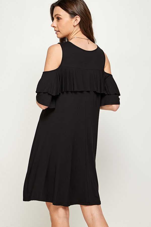 33 OS-D {Found Your Way} Black Cold Shoulder Dress PLUS SIZE XL 2X 3X
