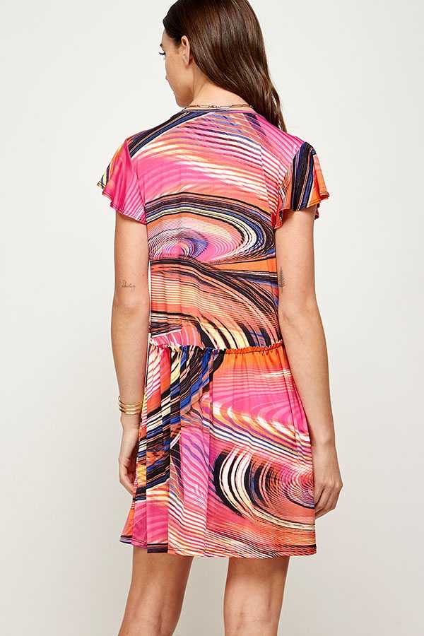 33 PSS-S {Happy Skies} Orange/Pink Print Babydoll Dress PLUS SIZE XL 2X 3X