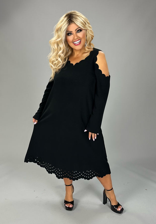 70 OS {Share The Love} Black Scalloped Edge Cold Shoulder Dress CW PLUS SIZE 2X 3X