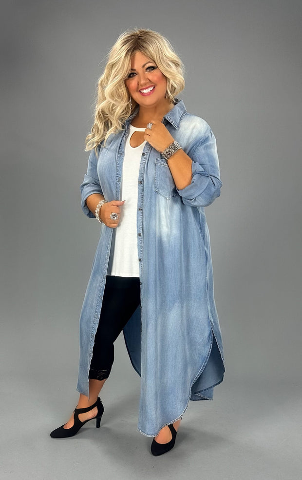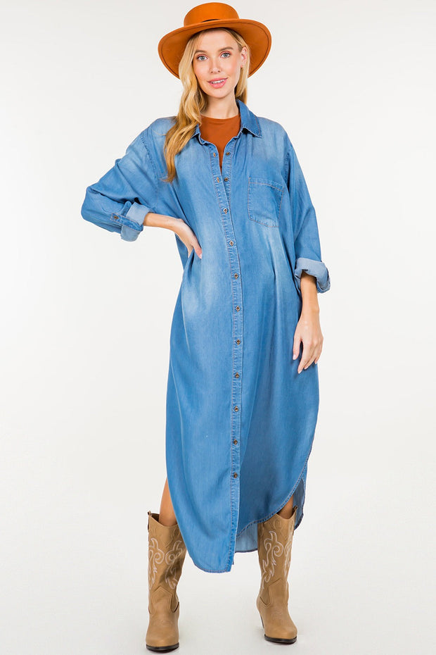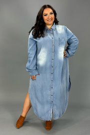 LD-A {Sweet Whispers} Chambray Button Up Dress PLUS SIZE 1X 2X 3X
