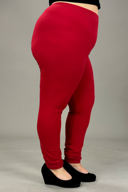 LEG-24 {Pursuit Of Comfort} Red Full Length Leggings EXTENDED PLUS 3X/5X